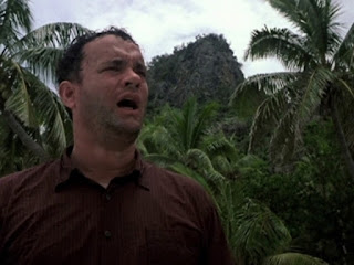 In December 1995, Chuck Noland (Tom Hanks) is a time-obsessed systems engineer, who travels worldwide resolving productivity problems at FedEx depots. He is in a long-term relationship with Kelly Frears (Helen Hunt), with whom he lives in Memphis, Tennessee. Although the couple wants to get married, Chuck's busy schedule interferes with their relationship. A Christmas with relatives is interrupted when Chuck is summoned to resolve a problem in Malaysia. While flying through a violent storm, his plane crashes into the Pacific Ocean. Chuck escapes the sinking plane and is saved by an inflatable life-raft but loses the raft's emergency locator transmitter. He clings to the life-raft, loses consciousness, and floats all night before being washed up on an island. After he awakens, he explores the island and soon discovers that it is uninhabited.Several FedEx packages from the crashed plane wash up on the shore, as well as the corpse of one of the pilots, which he buries. He initially tries to signal for rescue and makes an escape attempt with the remnants of his life-raft but cannot pass the powerful surf and the coral reefs surrounding the island. He searches for food, water, shelter, and opens the packages, finding a number of potentially useful items. He leaves one package, with a pair of angel wings stenciled on it, unopened. During a first attempt to make fire, Chuck receives a deep wound to his hand. In anger and pain, he throws several objects, including a Wilson volleyball from one of the packages. A short time later he draws a face in the bloody hand print on the ball, names it Wilson, and begins talking to it. One night, Chuck calculates that in order for the rescue workers to find the site of the plane crash, they'll have to search an area twice the size of Texas, making him doubtful he will ever be found.